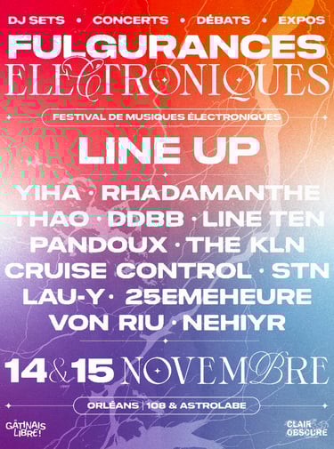 🤝 Nous, Gâtinais libre et Clair-Obscure, animés par le même désir de promouvoir les cultures locales et partageant la même vision artistique, nous unissons pour faire raisonner à Orléans les éclairs sonores venus de l’éther : les Fulgurances.